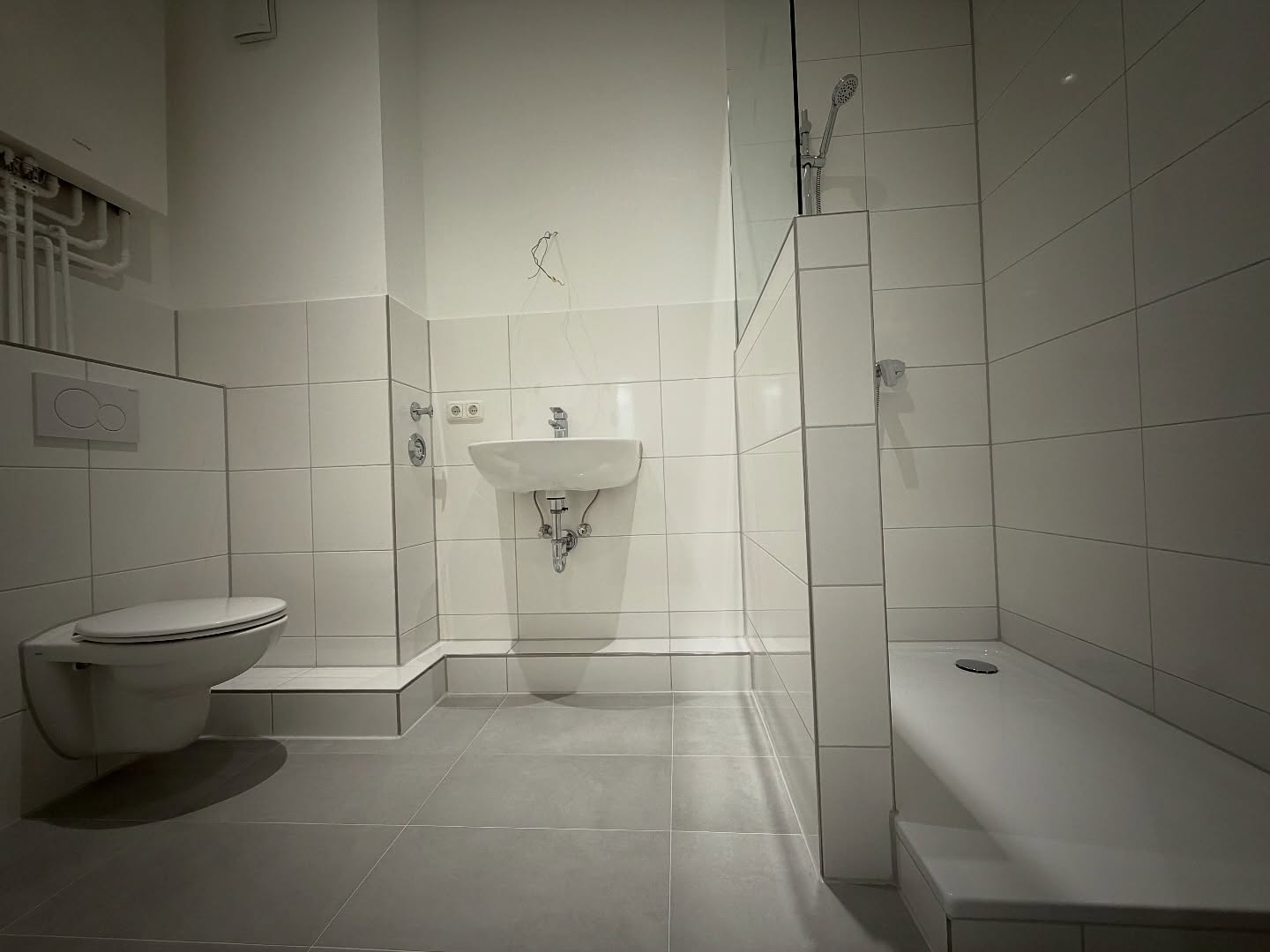 Frische Wandflächen, moderne Fliesen, ein pflegeleichter Boden und überarbeitete Bestandsbauteile sorgen jetzt für einen klaren, wertigen Gesamteindruck – ideal für langfristige Mieterschaft und eine nachhaltige Bestandspflege.